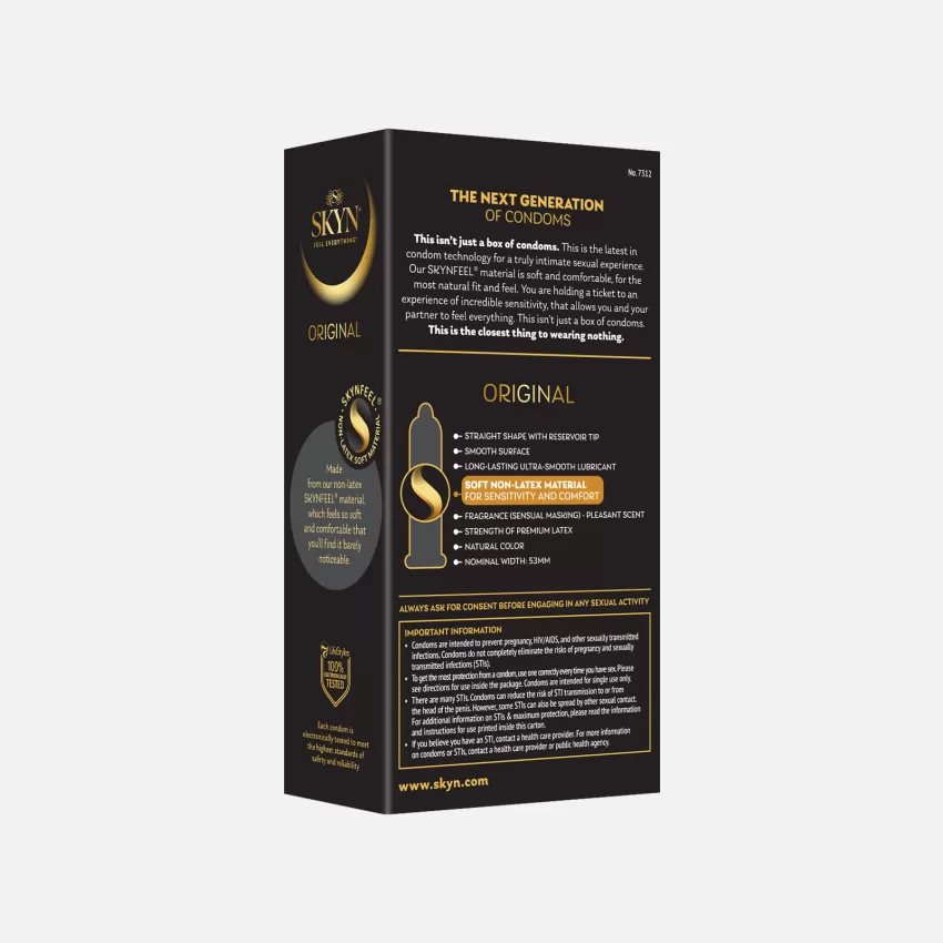 Diese neue Generation von Kondomen wird aus dem modernen, latexfreien SKYNFEEL®-Material hergestellt, das Lustgefühle nachweislich stärker stimuliert. Dieses Material ist so weich und komfortabel, dass Sie das Kondom kaum wahrnehmen und Sie und Ihr Partner wirklich alles spüren.