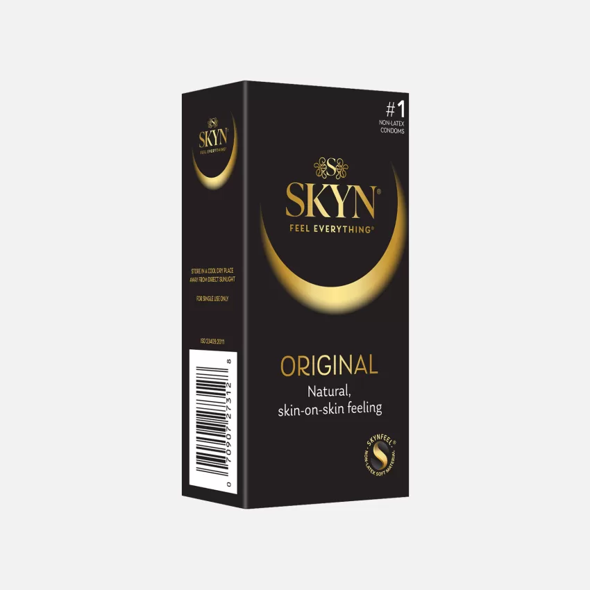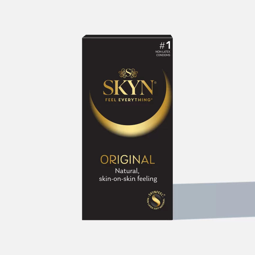 SKYN-Kondome sind aus synthetischem Polyisopren hergestellt, frei von Naturgummilatex und geeignet für Menschen mit einer bekannten oder vermuteten Latexallergie.