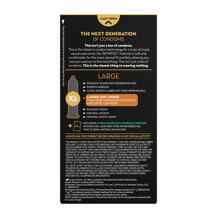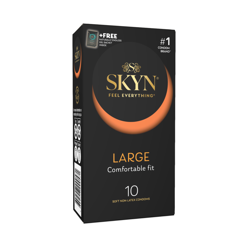 With a nominal width of 56 mm, SKYN Large are, as you might have guessed, larger and longer than our standard condoms, for extra comfort.