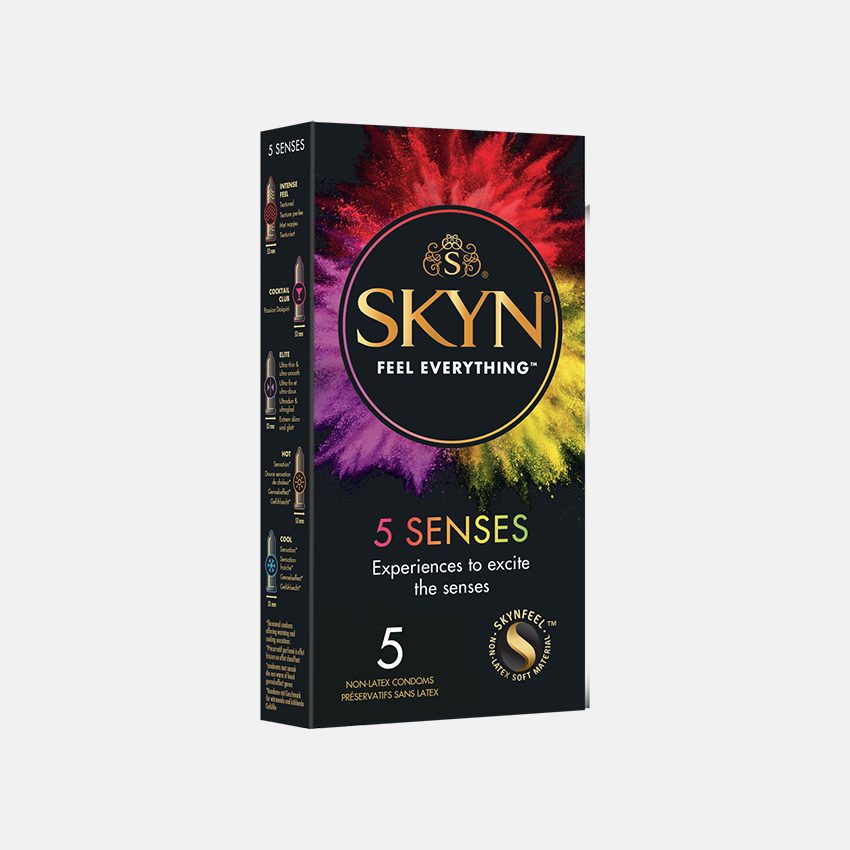 ARTICLES INCLUS - 30 préservatifs: 1 pack de 10 préservatifs SKYN® Original + 1 pack de 10 préservatifs SKYN® Intense Feel + 1 pack de 10 préservatifs SKYN® Extra Lube + un pack gratuit de 5 5 Senses + préservatifs SKYN® Stroke
