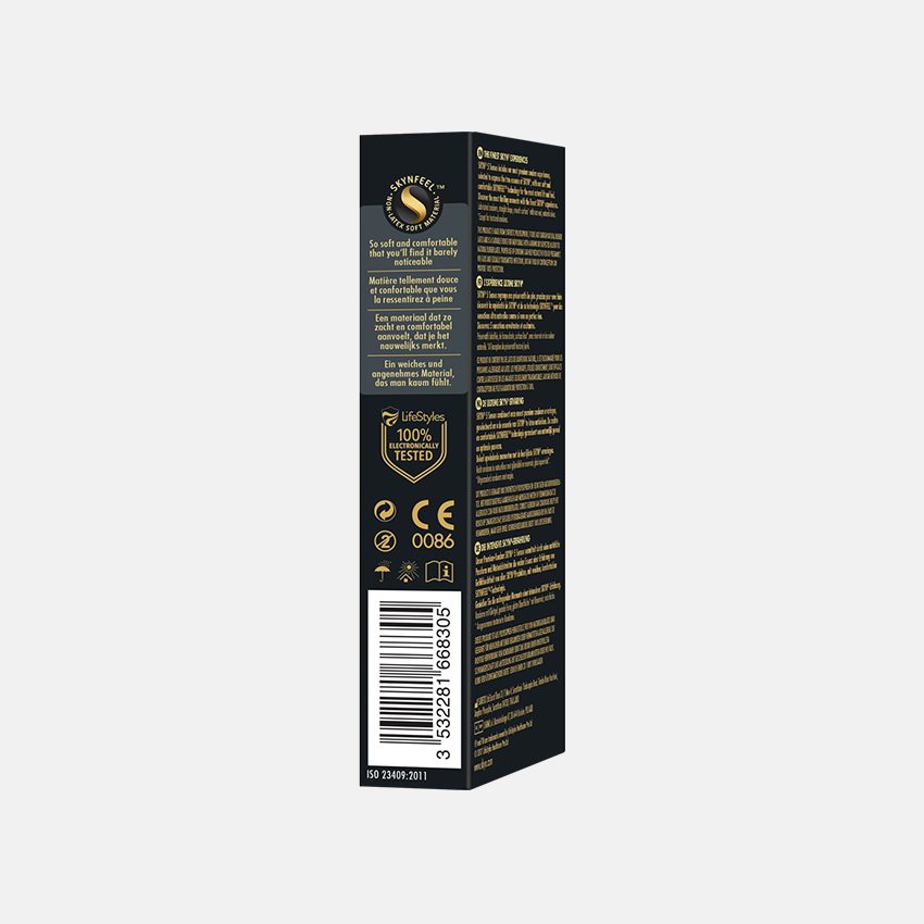 - SANS LATEX – Les préservatifs SKYN® sont fabriqués avec SKYNFEEL, un matériau en polyisoprène technologiquement avancé qui est complètement exempt de latex de caoutchouc naturel. Les préservatifs SKYN® sont lubrifiés avec de l’huile de silicone non spermicide SK-70 (diméthicone).