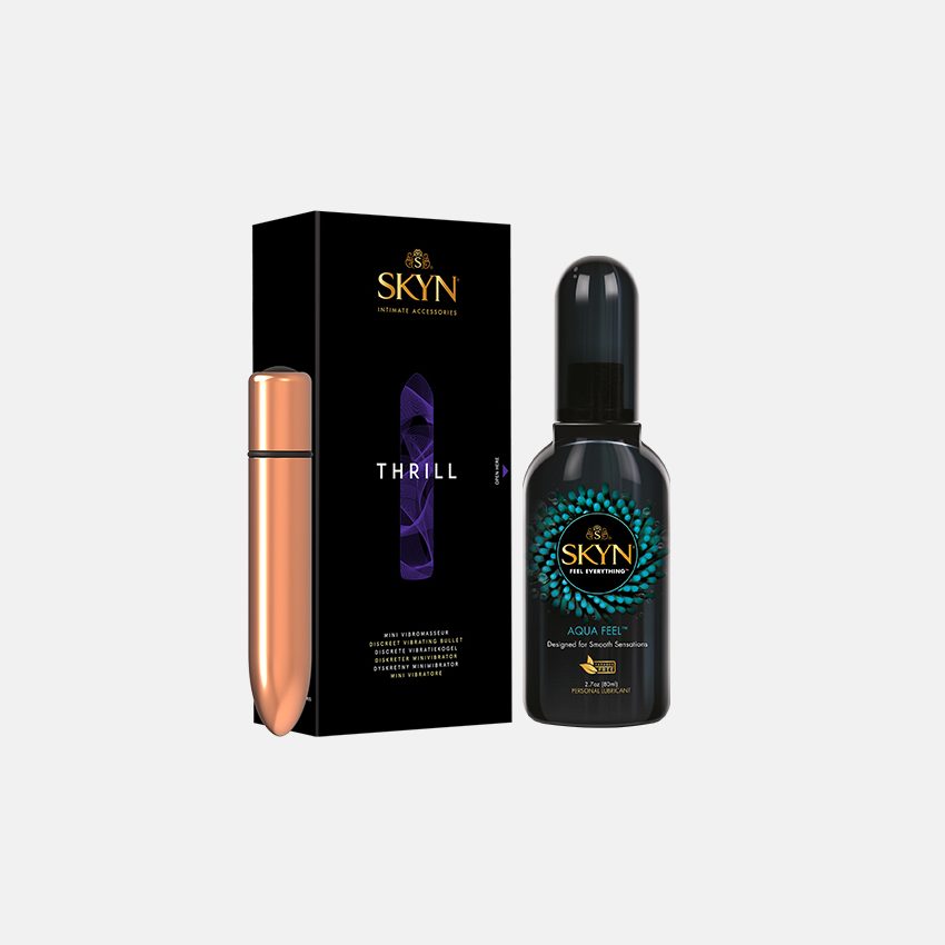 - SKYN Thrill est un vibromasseur bullet à utiliser en solo ou avec votre partenaire. Doté de trois vitesses de vibration différentes, SKYN Thrill permet des massages tout en douceur ou plus intenses pour une véritable extase sensuelle. Étanche.