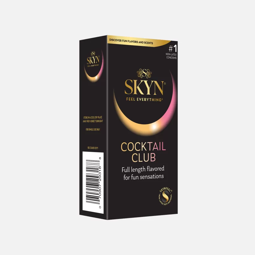 SKYN Cocktail Club includes condoms flavoured along the full shaft. Each flavour is inspired by a famous cocktail.