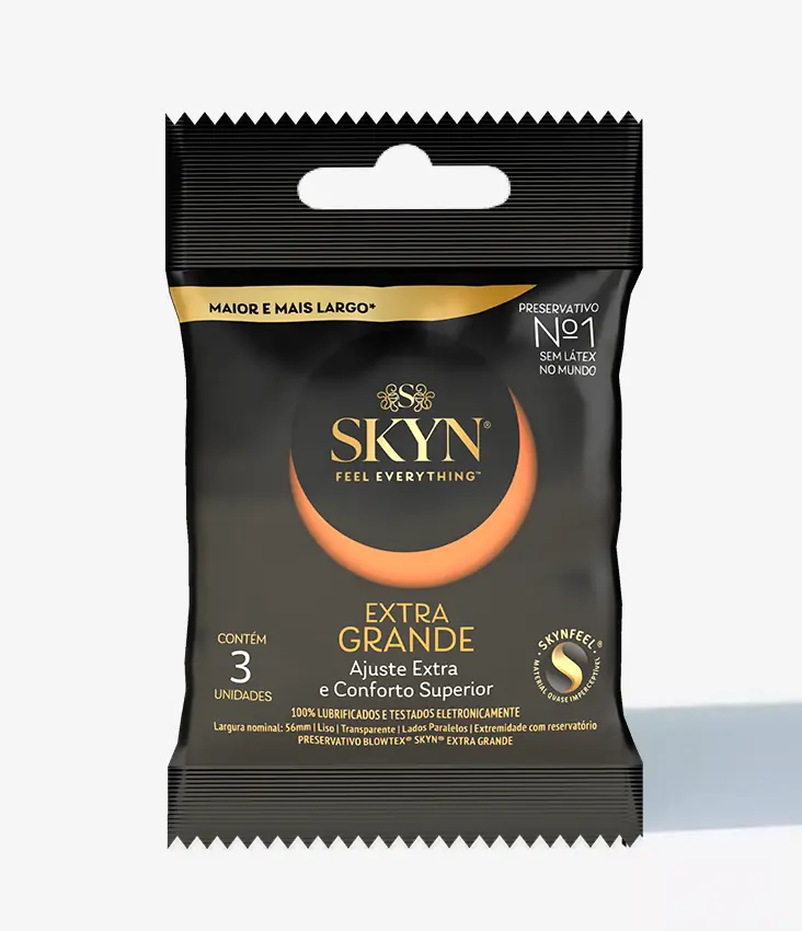 Com largura nominal de 56 mm, SKYN® Extra Grande é mais largo que nosso preservativo padrão e oferece maior conforto.