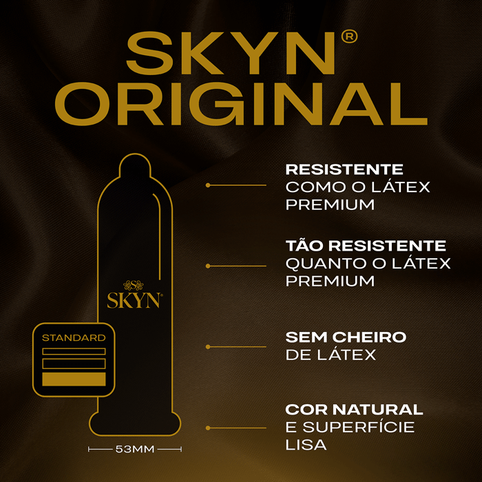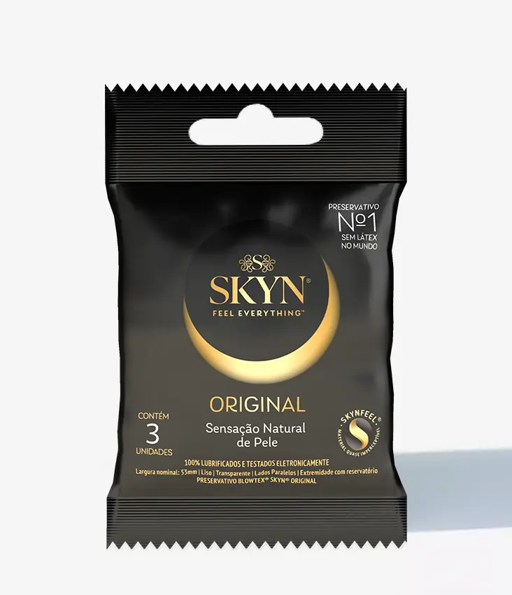 Os preservativos SKYN são produzidos com SKYNFEEL®, um material de poliisopreno tecnologicamente avançado que é completamente livre de látex de borracha natural.