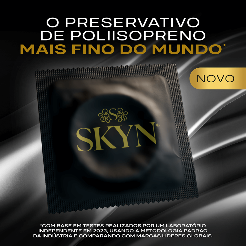 Os preservativos SKYN são produzidos com SKYNFEEL®, um material de poliisopreno tecnologicamente avançado que é completamente livre de látex de borracha natural.rnrnEles são lubrificados com óleo de silicone não espermicida SK-70 (dimeticona).rnrnNão contêm ingredientes de origem animal ou nonoxinal 9.